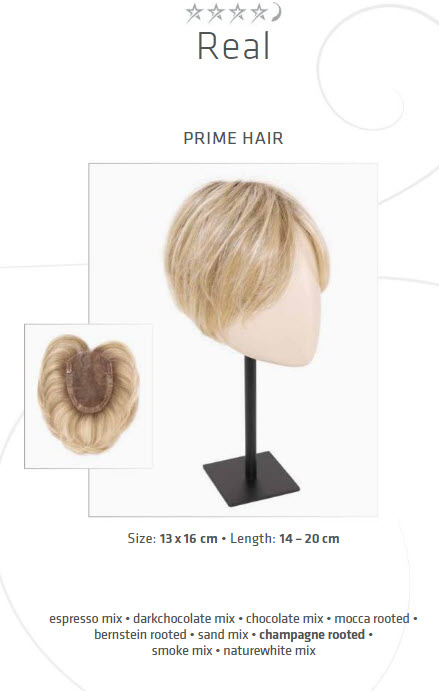 Prime Hair is de perfecte combinatie van hoge kwaliteit echt haar en uiterst fijne, hittebestendige synthetische vezel. Behandel de vezel als een echt haar vezel. Let wel op: Prime Hair Pruiken en haarstukken mogen in tegenstelling tot pruiken van synthetisch haar geföhnd worden mits de temperatuur niet boven de 120 graden komt.