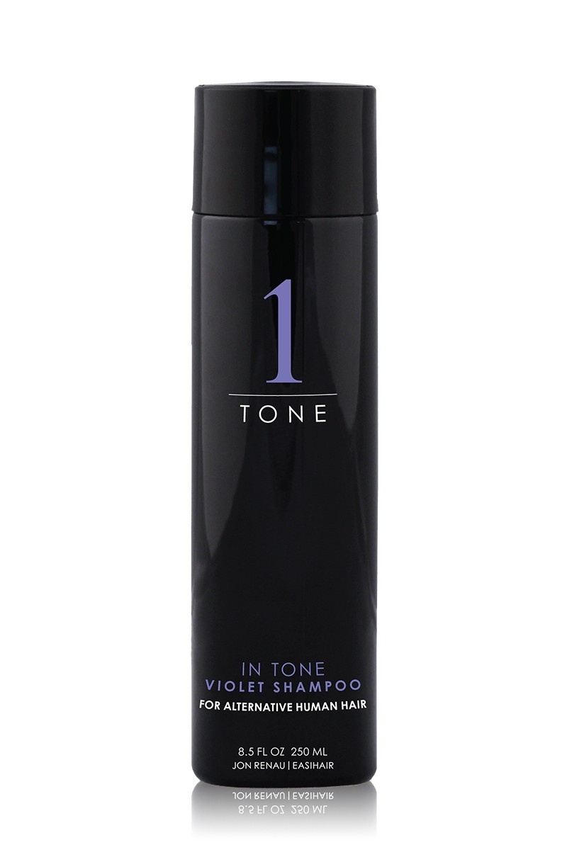 In Tone Violet shampoo van Jon Renau. Deze shampoo neutraliseert de gouden en gele tinten in blonde haarwerken van echt haar. Het brengt de levendige kleuren terug in het haar en heft de koperachtige kleur op. Bekijk zeker onderstaande video. ...