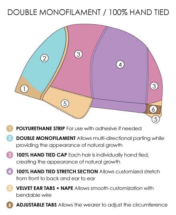 Lace Front + Monofilament + 100% handgeknoopt